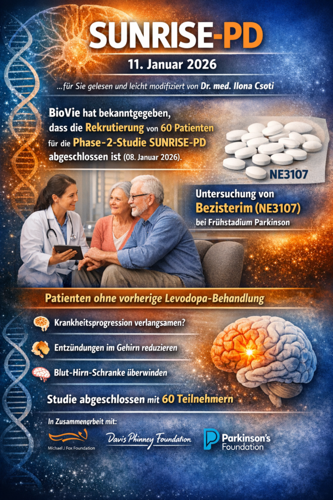 BioVie hat bekanntgegeben, dass die Rekrutierung von 60 Patienten für die Phase-2-Studie SUNRISE-PD abgeschlossen ist (08. Januar 2026).